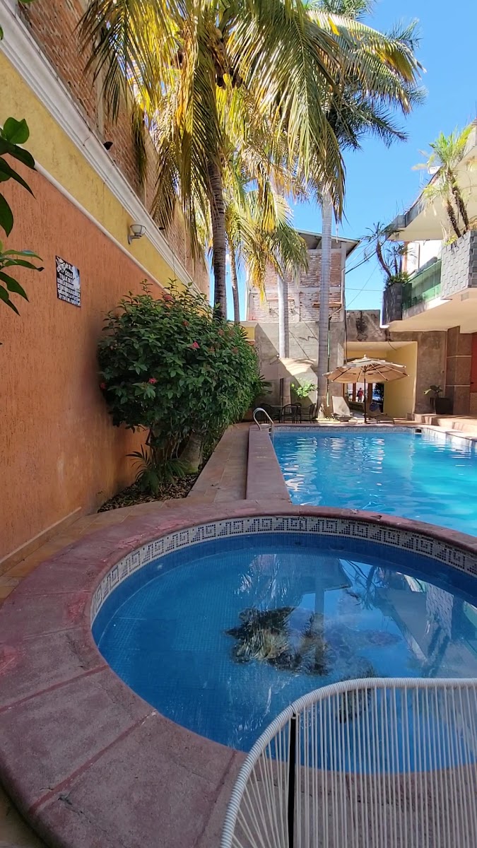 Muy bonito hotel, se ve que hacen bien la limpieza tienen una alberca que para el calor que hace se agradece tiene habitaciones con ventilador y otras con aire acondicionado el único detalle es el wifi que es medio lento pero ese sería mi único detalle